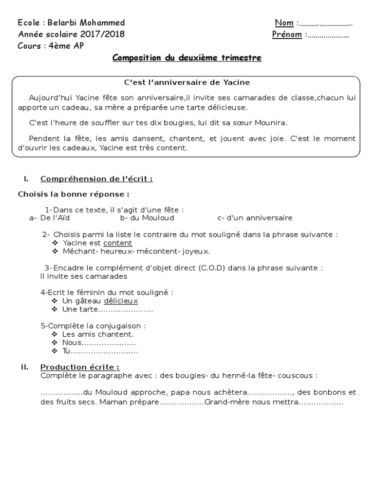 Les Niveau De Vie Pour Demaiin from imgv2-2-f.scribdassets.com Expression écrite sur aïd el fitr 4ap. Les élèves le fêtent en classe.ils dessinent des cartes de vœux pour les offrir à la maitresse. Faîtes votre ménage afin de ne pas avoir à le faire le jour j ; Pouli96 le 14/06/2021 à 12:28. Que commémore l'aid el kébir, aussi appelé aid al adha, à quelle date et sur combien de temps ? Voici quelques rituels à connaître, surtout quand on vit dans des pays à forte population musulmane.la fin du ramadan est généralement célébrée avec beaucoup d'entrain par les. L'aïd el fitr est de loin la fête la plus populaire de l'islam. Survenant le dixième jour du dhul al hijja.